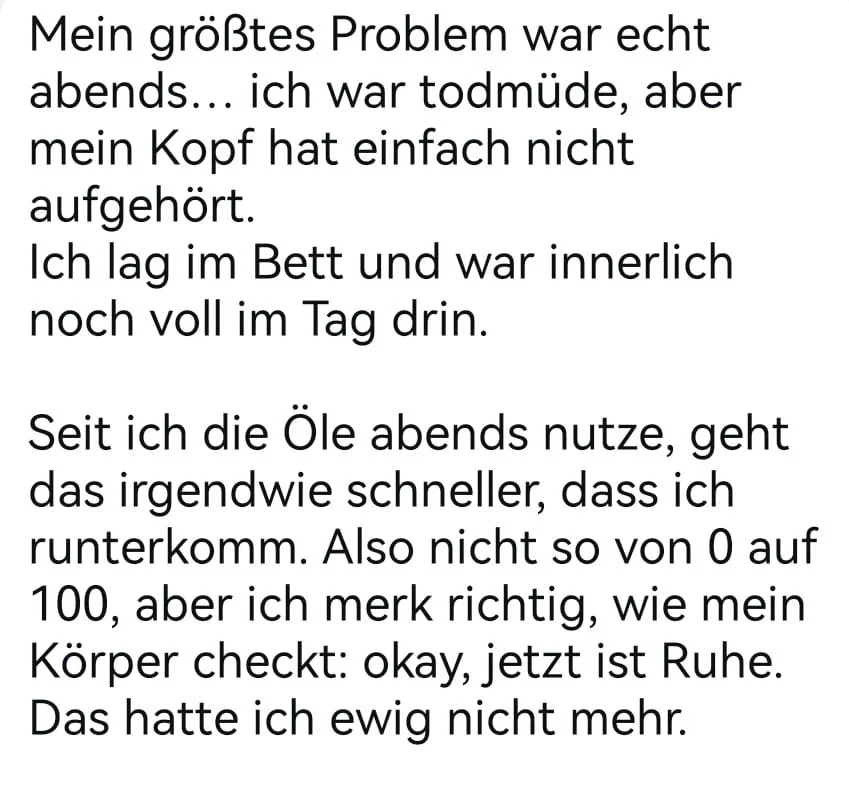Wichtig: Ätherische Öle sind hochkonzentriert und sollten niemals unverdünnt auf die Haut aufgetragen oder in den Mund genommen werden (außer sie sind speziell dafür geeignet). Bei der Anwendung ist immer auf Qualität und Dosierung zu achten.